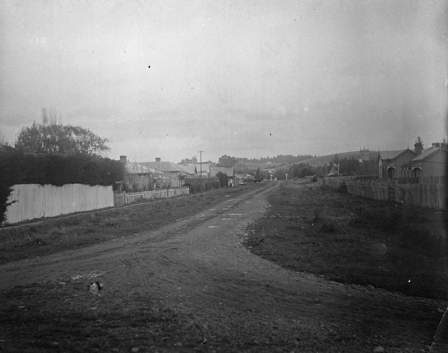View on Camden Street, looking west from Denbigh Street towards St. John's Anglican Church. Photographed in 1908.