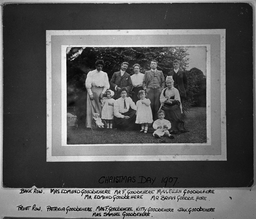 The Goodbehere family, photographed on Christmas Day in 1907. In the photo: