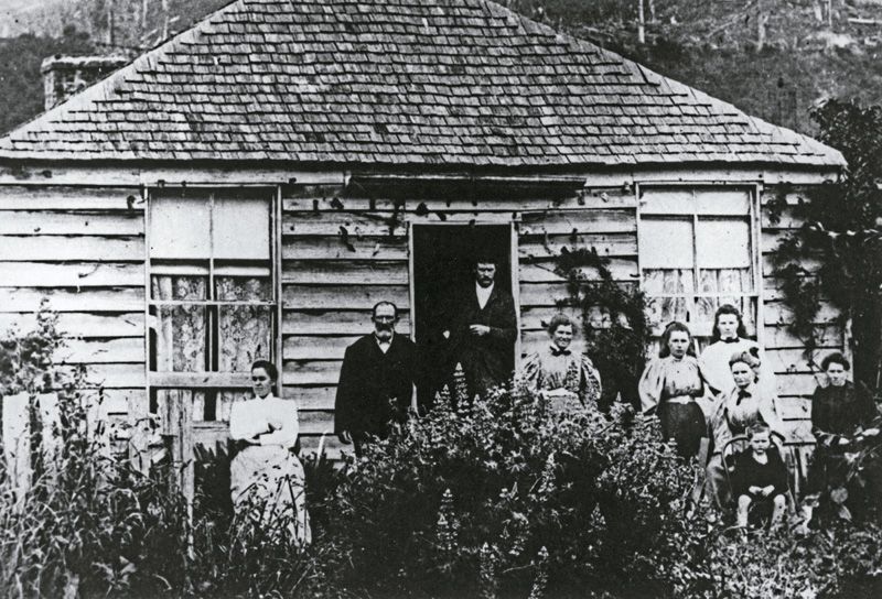 Left to right: Mrs. W.G. Cullington (seated), H. Fraser J.P. (standing), James A. Fraser (standing in doorway), Masie Fraser, Elsie Fraser, Maude Wilkinson, Mrs. Hugh Fraser (seated in front of Maude Wilkinson), ? Hills (next to Mrs. Hugh Fraser), John D. Fraser (seated on chair in front of Mrs. Hugh Fraser).