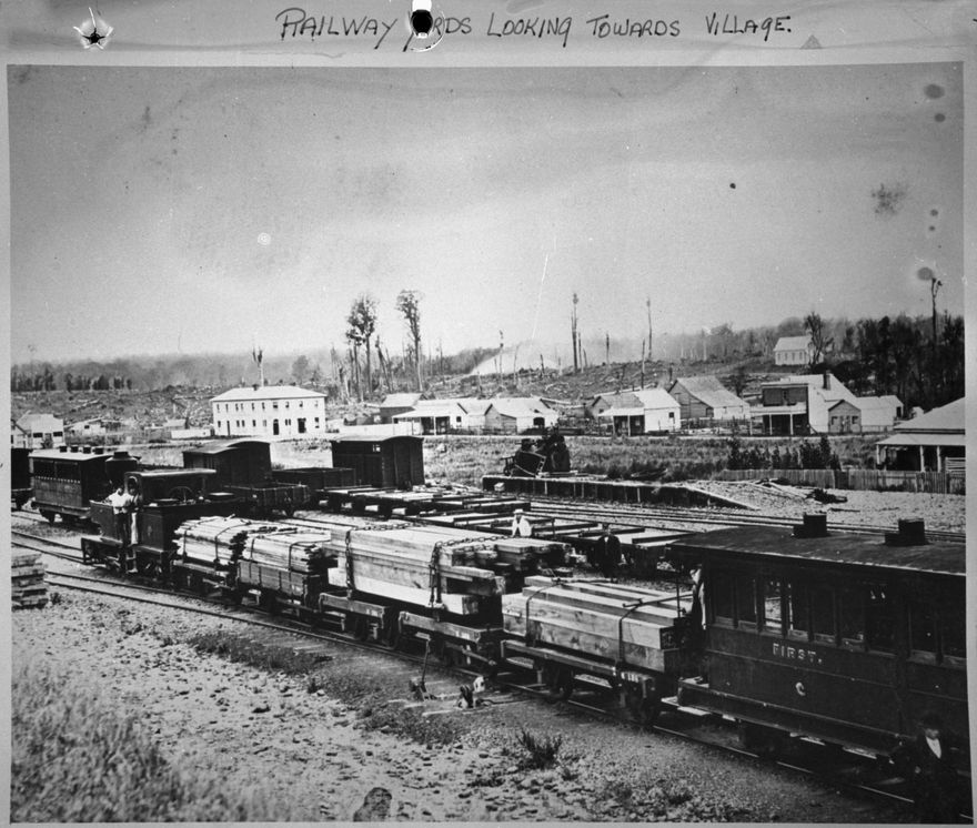 Halcombe Railway Yards, looking towards the village. Photographed in 1883.