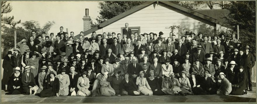 Taken at Cheltenham School by Teachers house. Old pupils at the 1936 50th Jubilee