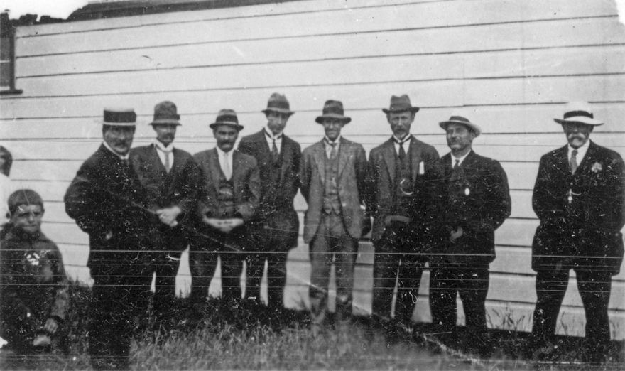 Left to right: G.H. Espiner, F. Burton, A. Hyde, G. Donald, R. Stewart, R. Currie, J. Scheidt, J. Jepson