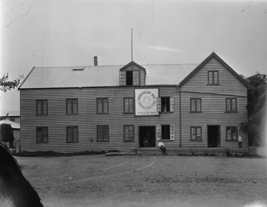 Chamberlain Brothers Flour Mill. Became Hodder and Tolley, 1920. Situated just off Kimbolton Road, where Tui Mill Grove is now.