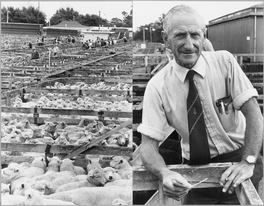 Noel Christensen, Manager Feilding saleyards, 1982. He began working there in 1962. Full article in 'Evening Standard' April 21, 1982. The article notes that at the time, Feilding saleyards was the third largest in the country, the stock turnover exceeded only by Addington in Christchurch and Stortford Lodge in Hawkes Bay.