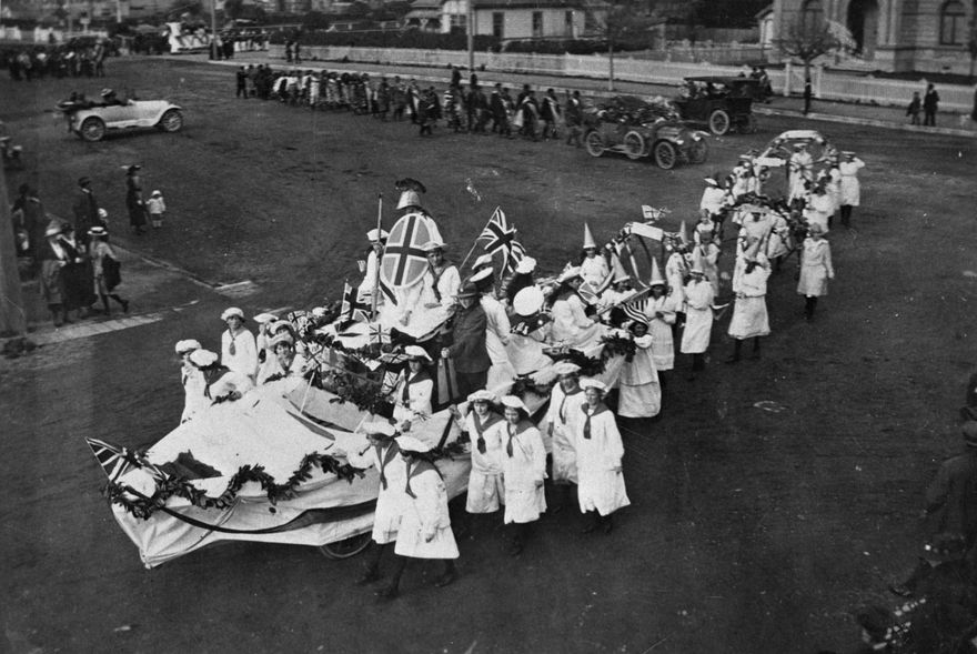 Almost certainly the Armistice Day celebrations, judging by the age of the vehicles and patriotic nature of the float. Compare with GTH:pc3.