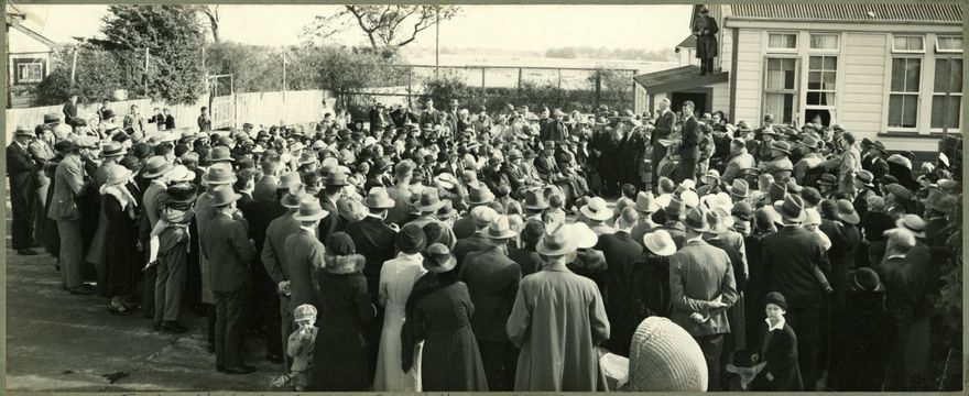 Teacher Mr H. Wood calling the Roll Jubilee 1886-1936