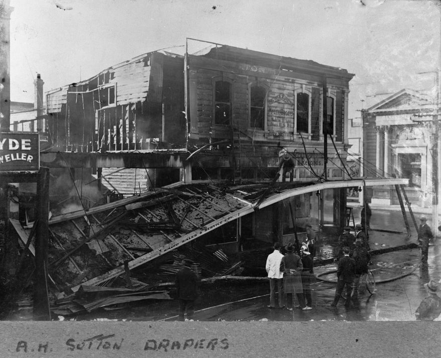 A.H.Sutton Drapery fire. Corner of Manchester and Fergusson Streets, Feilding.