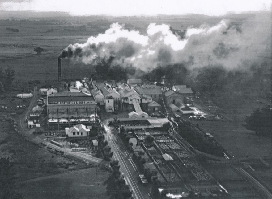 Aerial Photograph of Thomas Borthwick & Sons Freezing Works, showing the yards.