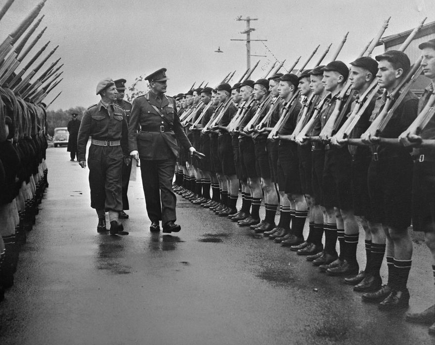 FAHS Cadets being inspected by General Bernard Freyberg and Don Fergusson. The exact date and photographer is unknown.