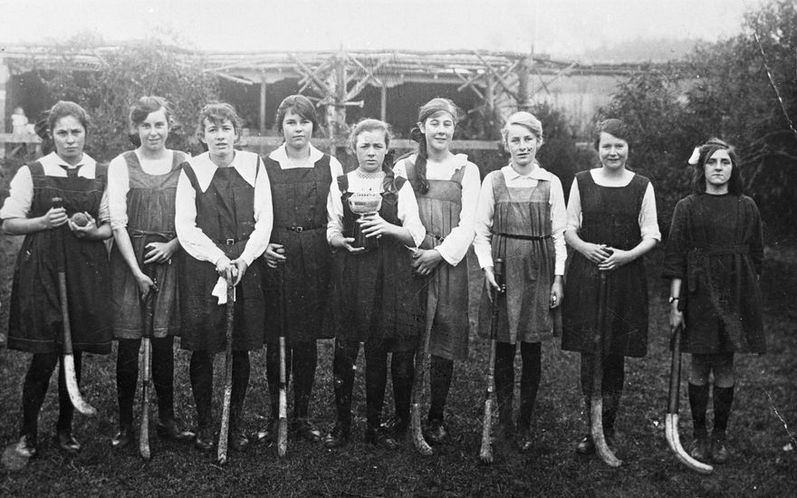From left: F. Noble, Meg Knyvett, -, -, Bertha Dewe, K. Edwards, E.H. Hickmott, -, G.Turner.