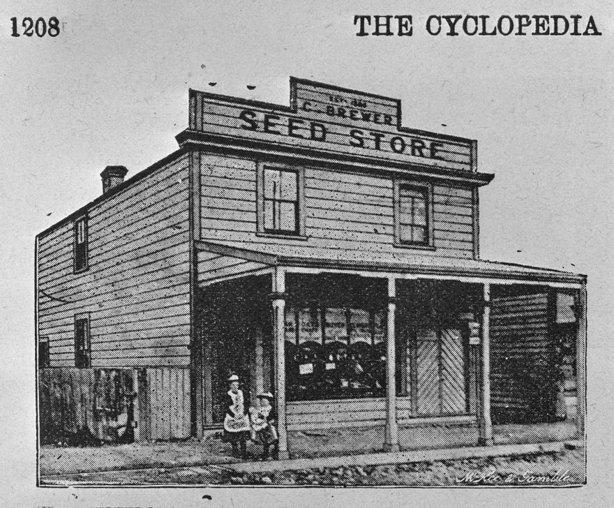 Brewer's Seed Store in Ashhurst, owned by Gaius Brewer. Photographed in 1884.