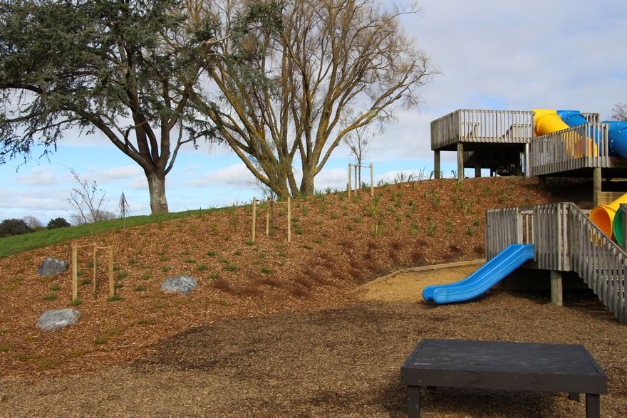 Swimming in the Oroua River, picnics and a children's playground feature within this expansive 24ha riverside park. A number of sports grounds are also a popular venue for a range of sporting activities and dog training. The local Pony Club is also a regular feature. An athletic track is beside the (riverside) driveway. Just off Campbell Street, there is a "secret" azalea garden that is being developed as part of the walkway system. Facilities The recently upgraded children's playground now features a new tiered fort with minislides.