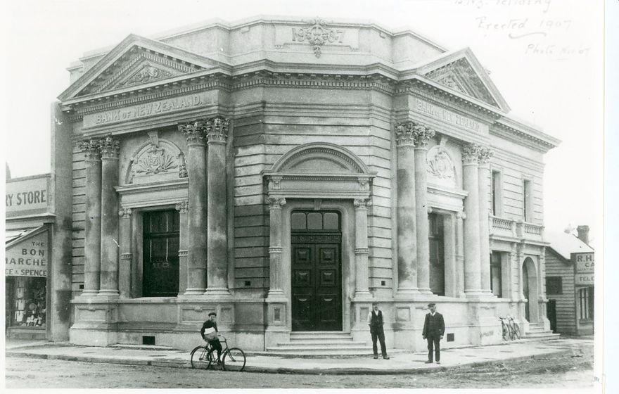Feilding Bank of New Zealand office opened on the 5th September 1881. The first branch was located in Fergusson Street (exact location unknown). In 1892 BNZ in Halcombe closed and the building was transferred to Feilding on a new site at 50 Fergusson Street, where Feilding Store stands today. By the early 1900s the number of staff had increased to the point where the building could no longer accommodate them. A new large building was constructed on the same site in 1907. The building was rebuilt again in the 1960s, opening in April 1965. - BNZ Heritage