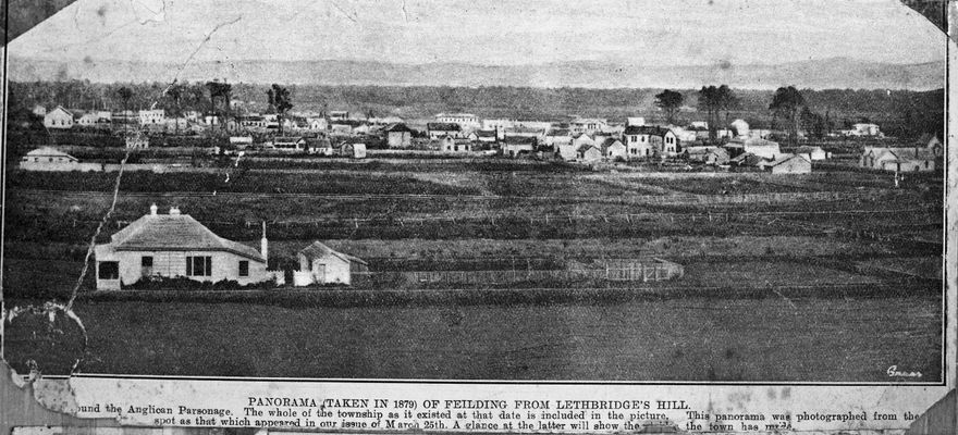 Panoramic shot of Feilding taken in 1879 from Lethbridge's Hill.