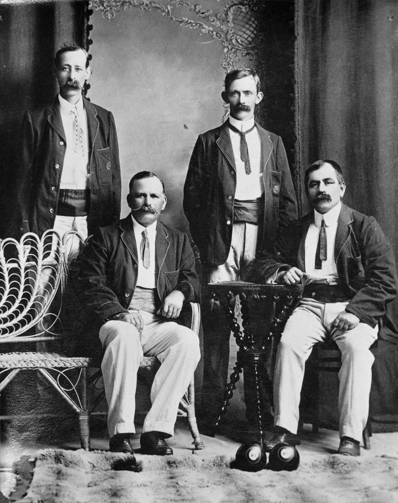 Feilding Bowling Club Team. Standing: H.C.Stewart, W.Irvine. Sitting: G.H.Saywell, G.Manning.