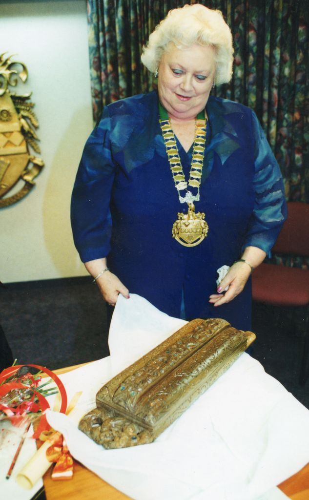 - In October 1995, after the last meeting of council, the outgoing mayor Caryll Clausen (pictured), was presented with a wakahuia by the members of the Taumata Te Ra Marae. - The wakahuia, which is a kind of treasure box, was carved by Kelvin Kereama, from a piece of totara that came from the Manawatu River.