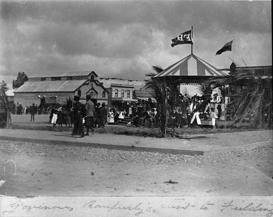 Text on photo reads: "Governor Ranfurly's visit to Feilding".