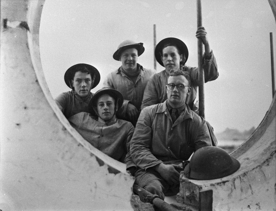 Army engineers dismantling the Post Office clock tower after the 1942 earthquake.